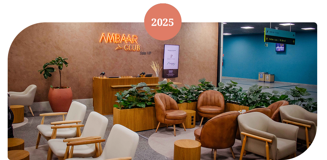 AMBAAR Club: criada em parceria com a Airport Dimensions, une a expertise americana dos lounges The Club com a brasilidade da AMBAAR Lounge, oferecendo ambientes acolhedores e conectados à jornada do passageiro moderno, com forte presença em aeroportos brasileiros.